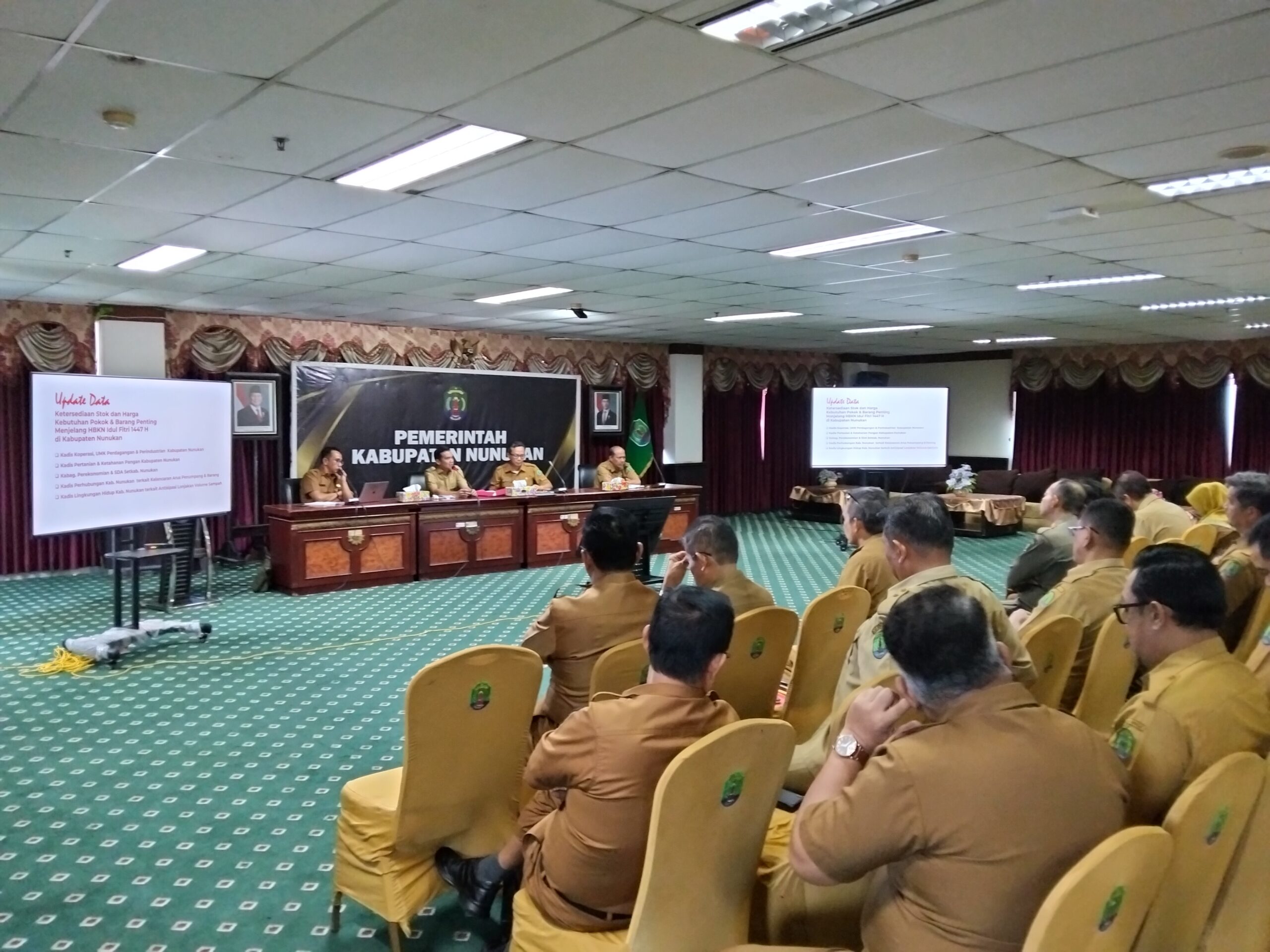 LikeKaltara.com, NUNUKAN – Bupati Nunukan, H. Irwan Sabri, menggelar Rapat Koordinasi bersama seluruh Pimpinan Perangkat Daerah di lingkungan Pemerintah Kabupaten Nunukan, Senin (16/3/2026). Kegiatan tersebut berlangsung di ruang pertemuan lantai 4 Kantor Bupati Nunukan. Rapat ini bertujuan untuk memastikan kesiapan pelayanan publik serta ketersediaan kebutuhan pokok masyarakat menjelang Hari Raya Idul Fitri 1447 Hijriah/2026 Masehi.
